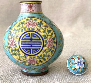 The finest of all snuff bottles are those that are enamelled on copper, brass, glass, gold.