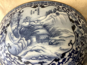 BLUE AND WHITE LANDSCAPE MASTERPIECE FALANGCAI 珐琅彩 ENAMEL BOWL
