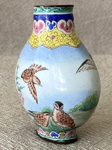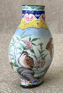 The finest of all snuff bottles are those that are enamelled on copper, brass, glass, gold.