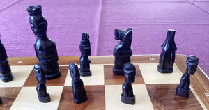 A very rare primitive hand carved ivory chess set. This set would be totally unique, a one of a kind.